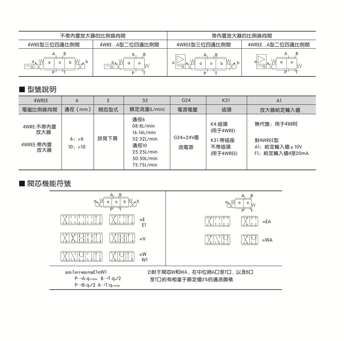 ● 4WREE:帶集成式放大器 , 可與歐美同類型產(chǎn)品互換。