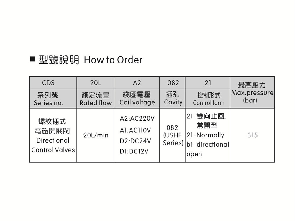 后 , 此閥截止油液雙向流動。* 額定流量:20L/miin