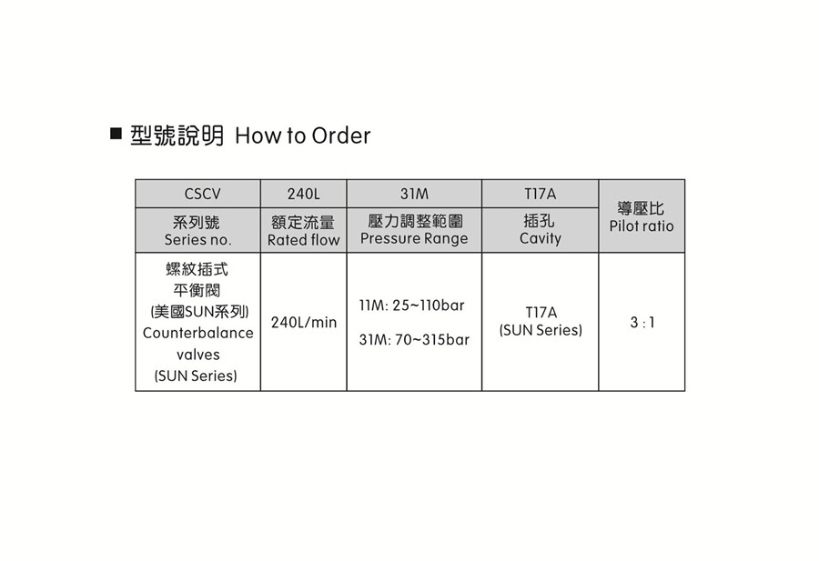 * 可控制油缸逆向背壓, 防止油